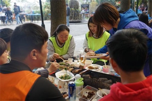 “友谊第一,比赛第二”。虽说在赛场上决出了胜负,但丝毫不影响大家享用“自助烧烤”的愉悦心情。午餐时间,大家分工合作、相互配合,每个人各自认领了力所能及的工作,有的人去领食材餐具,有的人分配餐具做后勤服务,厨艺好的负责烧烤,缕缕炊烟伴随着欢声笑语,气氛其乐融融。