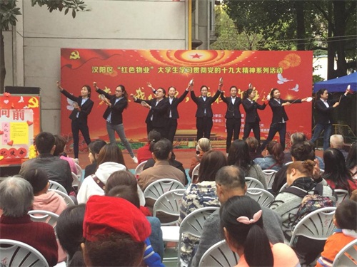 图为红色物业大学生表演百子歌《喜庆十九大》